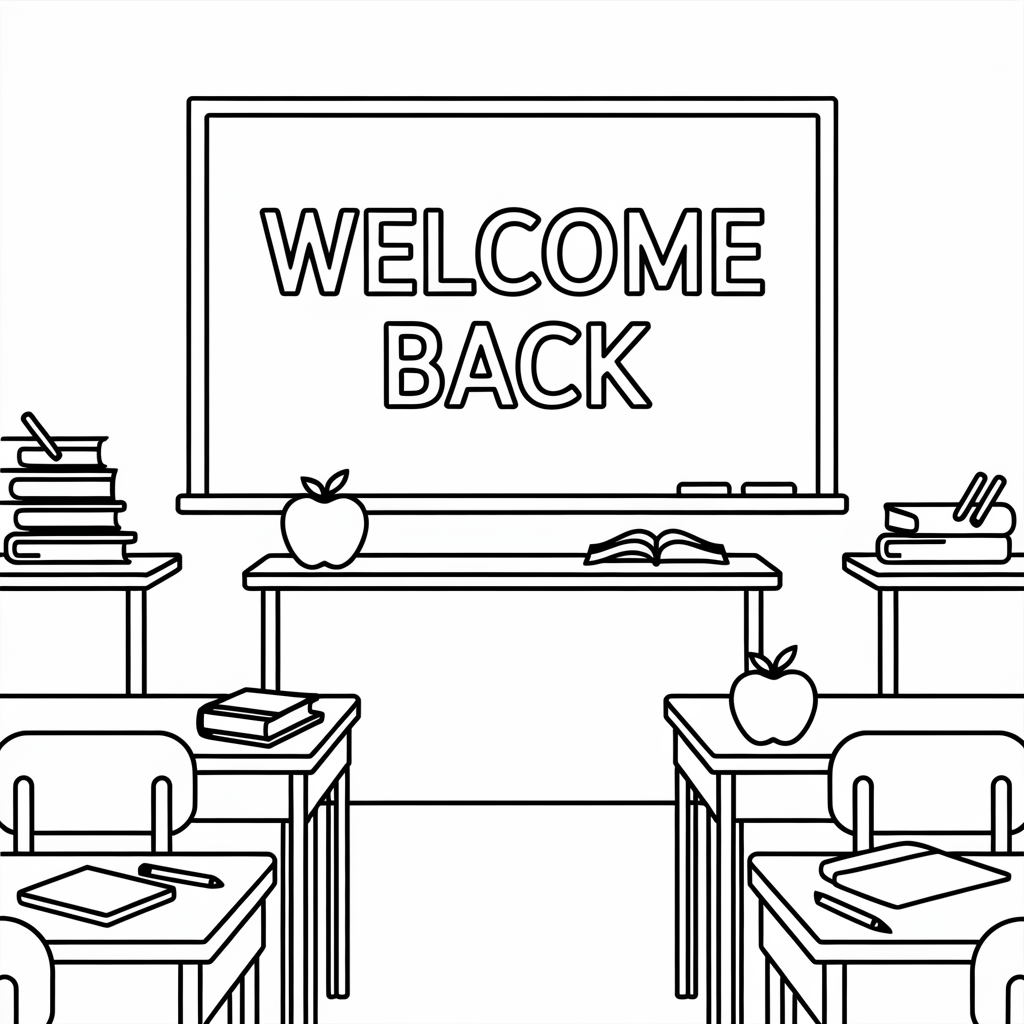 - Welcome Back Classroom Scene – A bustling, friendly classroom setting full of school supplies, desks, and smiles.