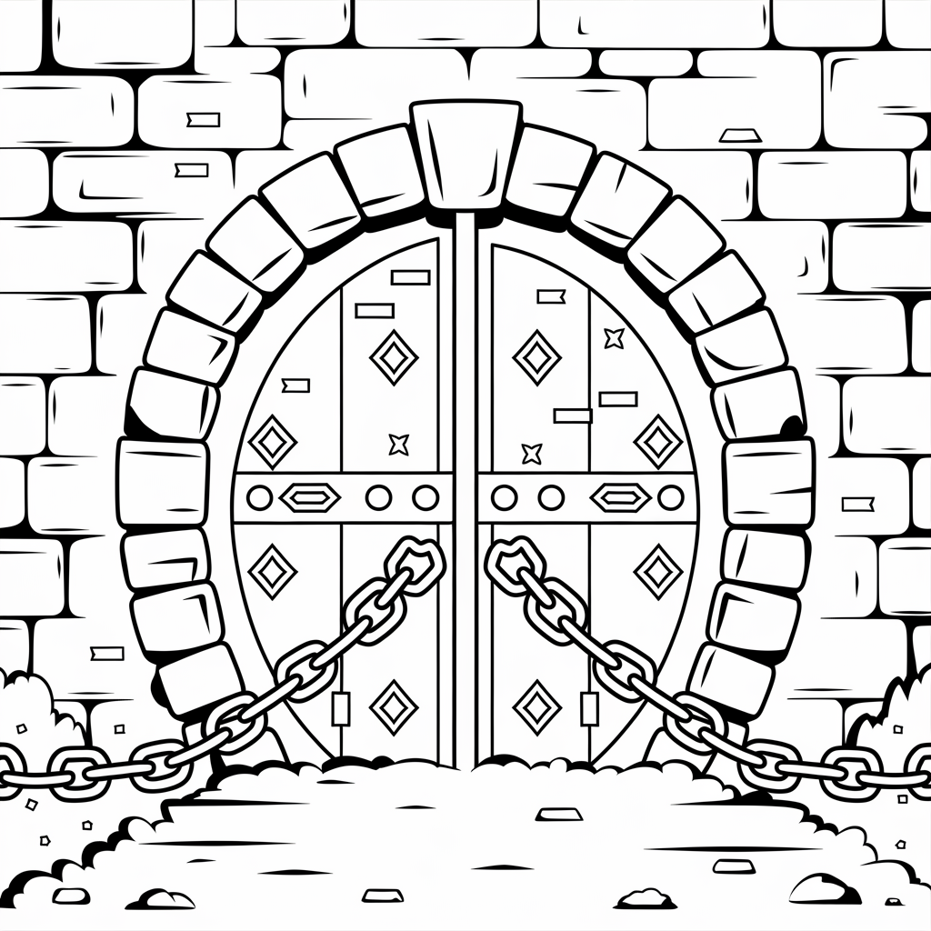 Dungeon Door With Glowing Runes – Mysterious Fantasy Coloring Sheet