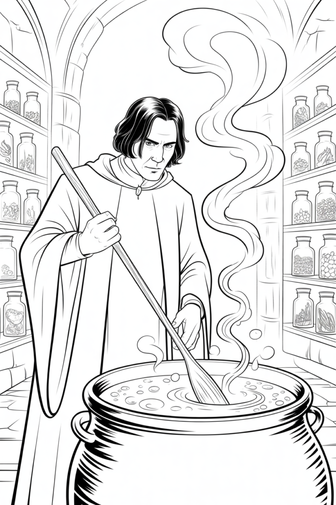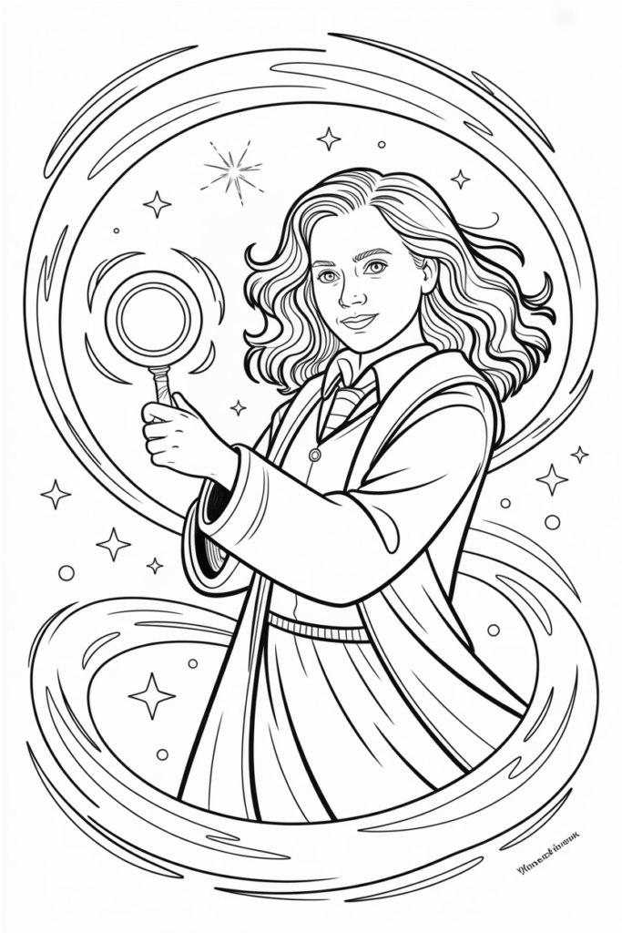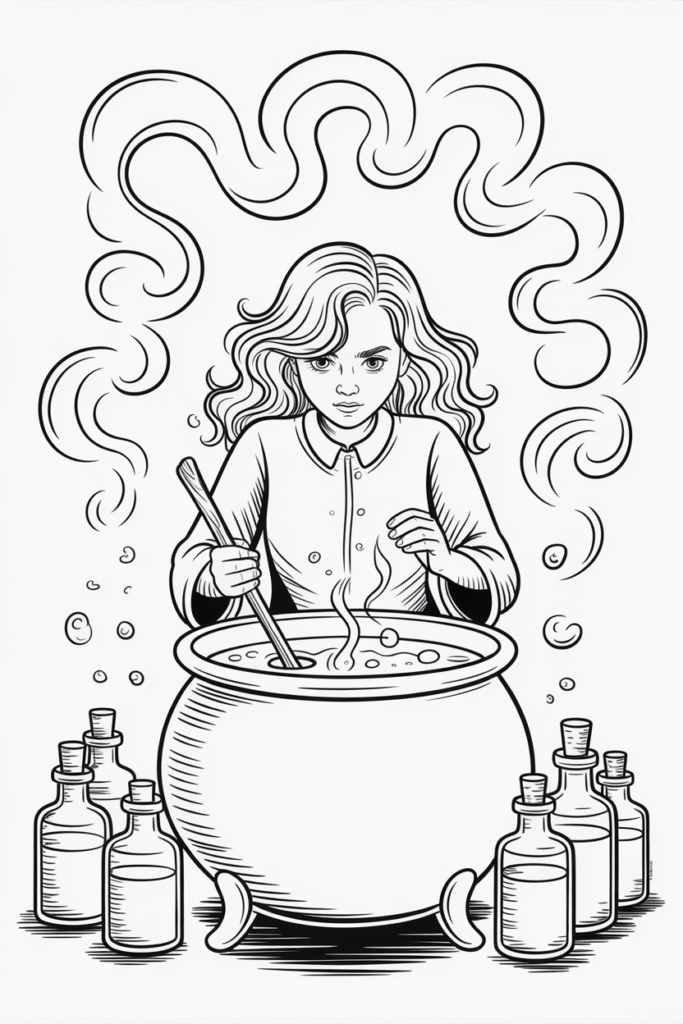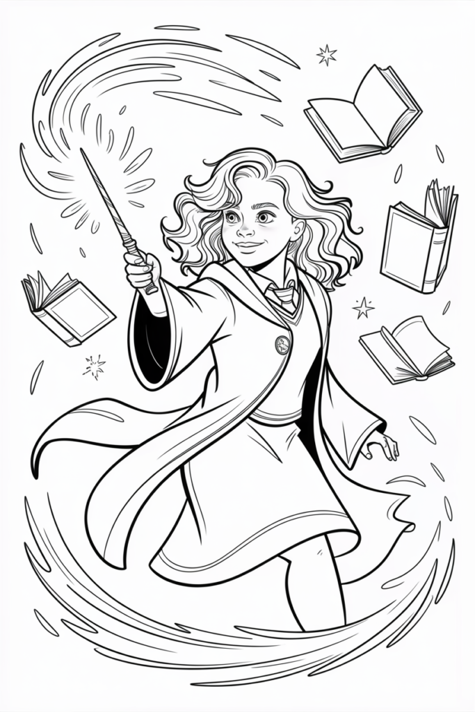 - Characters: Color Harry with his wand, Hermione with books, Dumbledore in his majestic robes, and cute chibi versions of every character.