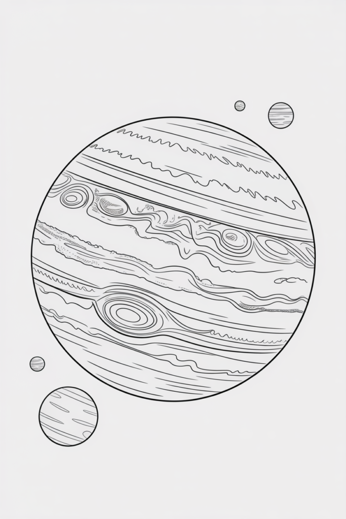 Jupiter-Style Giant Planet & Crater Planet Rocket Coloring Page – Detailed Space Coloring Pages for Kids”